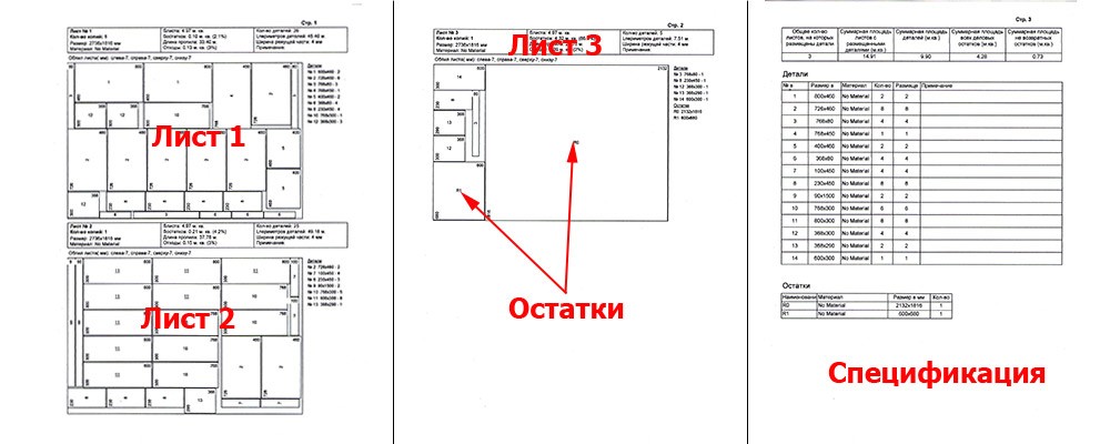 Как видно из схем, для изготовления нашей кухни (без модуля под духовку, который будет рассмотрен отдельно), нужно три листа ДСП. Но в третьем листе – всего лишь несколько деталей.