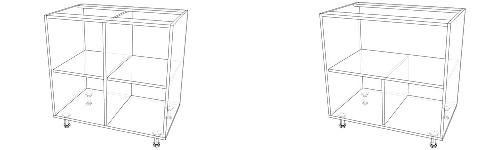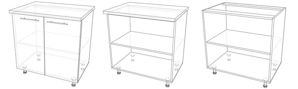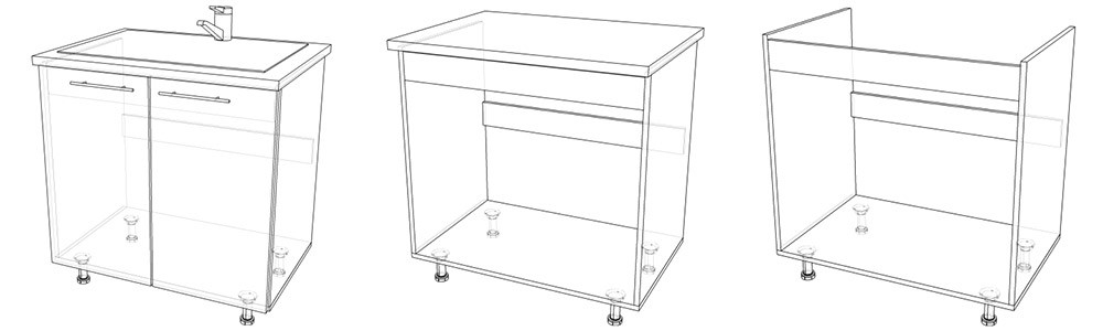 И первое, которые мы рассчитаем – это короб под мойку, и такой же по размерам, крайний модуль с распашными фасадами.
