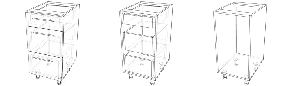 Деталировка коробов у нас готова, теперь нужно рассчитать размеры фасадов, а после, размеры выдвижных ящиков.
