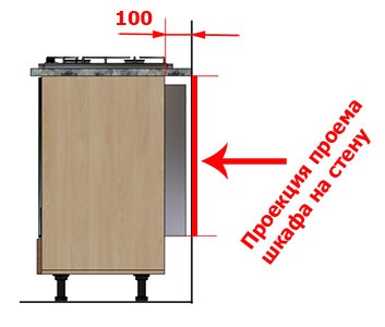 Так же нужно знать, что глубина духовки такова, то при заднем “нахлесте” столешницы на короб в 100мм (а именно такой (и больше) размер нужно давать на кухни, в состав которых входят подобные модули), в проекции духового шкафа (на стену) не должно быть ничего (розетки, трубы и т.д.), так как шкаф может просто не “стать” в короб.